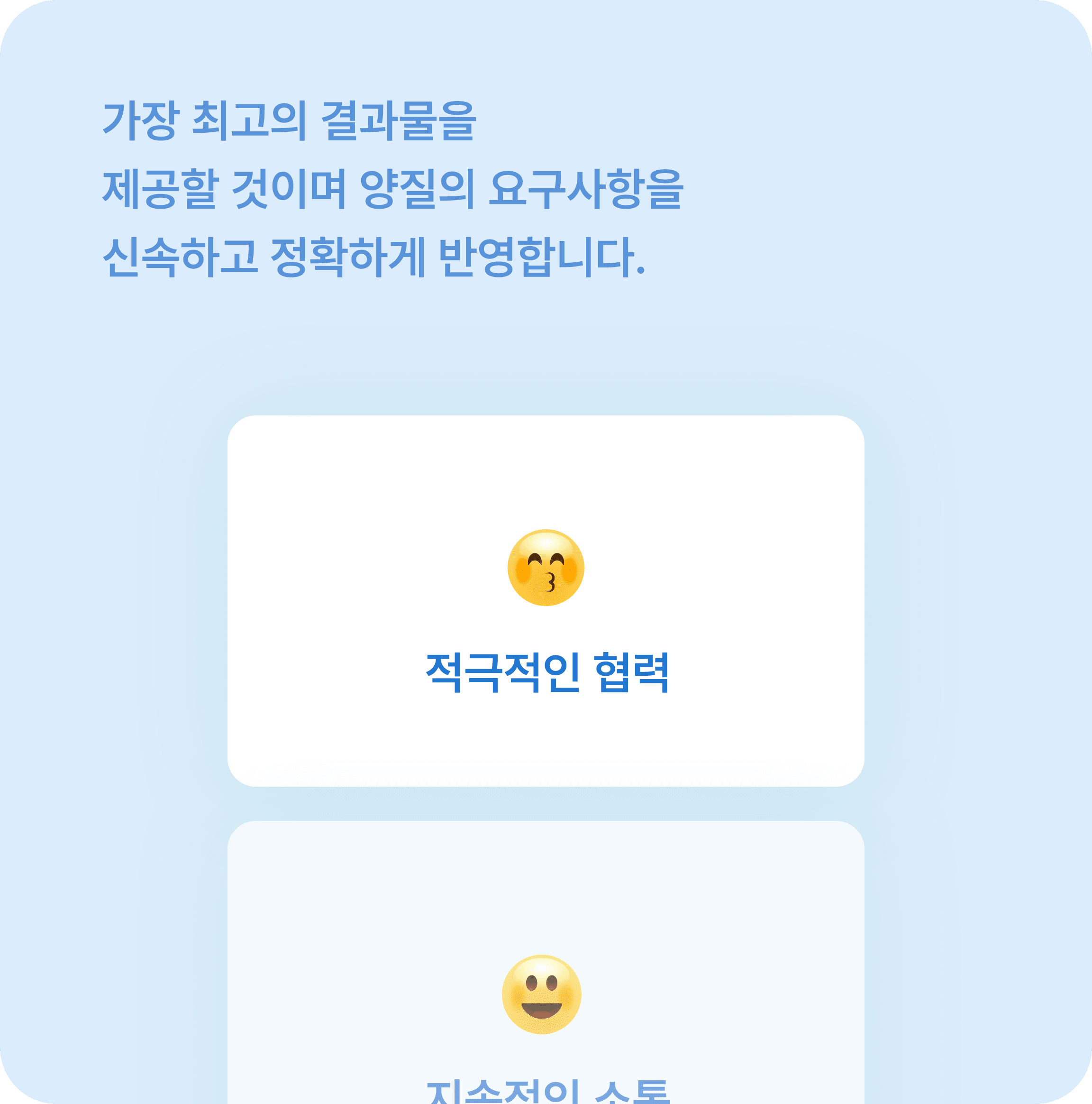 고객과 사용자가 원하는 결과물을 도출합니다.